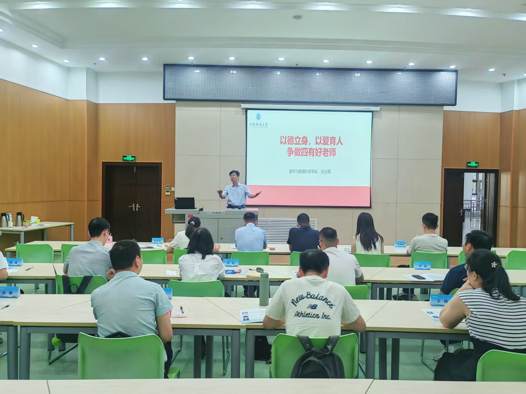 開班首場(chǎng)報(bào)告由數(shù)學(xué)與數(shù)據(jù)科學(xué)學(xué)院白云霄教授分享題為《以德立身,以愛育人—爭(zhēng)做四有好老師》的主題報(bào)告。白云霄結(jié)合自己三十余年從教經(jīng)歷,深入淺出地詮釋了"師德"與"師愛"的深刻內(nèi)涵。他談到,新時(shí)代教師不僅要傳授知識(shí),更要塑造靈魂,要以德立身、以德立學(xué)、以德施教。他寄語(yǔ)青年教師要珍惜韶華、勇?lián)姑瑢€(gè)人發(fā)展融入學(xué)校發(fā)展大局,以"躬耕教壇,強(qiáng)國(guó)有我"的擔(dān)當(dāng)精神,在教書育人的崇高事業(yè)中實(shí)現(xiàn)人生價(jià)值。