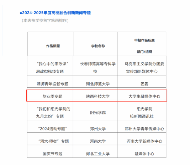 近日,由中國青年報(bào)社、中青校媒主辦的“尋找2024-2025年度高校校園媒體融合創(chuàng)新案例”評(píng)選活動(dòng)結(jié)果揭曉。經(jīng)網(wǎng)絡(luò)投票和專家復(fù)審等環(huán)節(jié)綜合評(píng)定,黨委宣傳部大學(xué)生融媒體中心選送的“2024年畢業(yè)季專題”入選“2024-2025年度高校融合創(chuàng)新新聞專題”,校團(tuán)委“科奕報(bào)社”入選 “2024-2025年度高校校園媒體融合創(chuàng)新案例”。