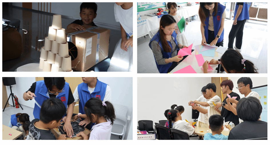 “做中學(xué)”環(huán)節(jié),實(shí)踐團(tuán)將科學(xué)知識融入趣味實(shí)驗(yàn),如“空氣炮”“紙杯飛機(jī)”“走馬燈”等,吸引孩子們注意力,講解科學(xué)原理,讓科學(xué)變得生動。同時開設(shè)英語、閱讀、手工等課程,助力孩子全面發(fā)展。
