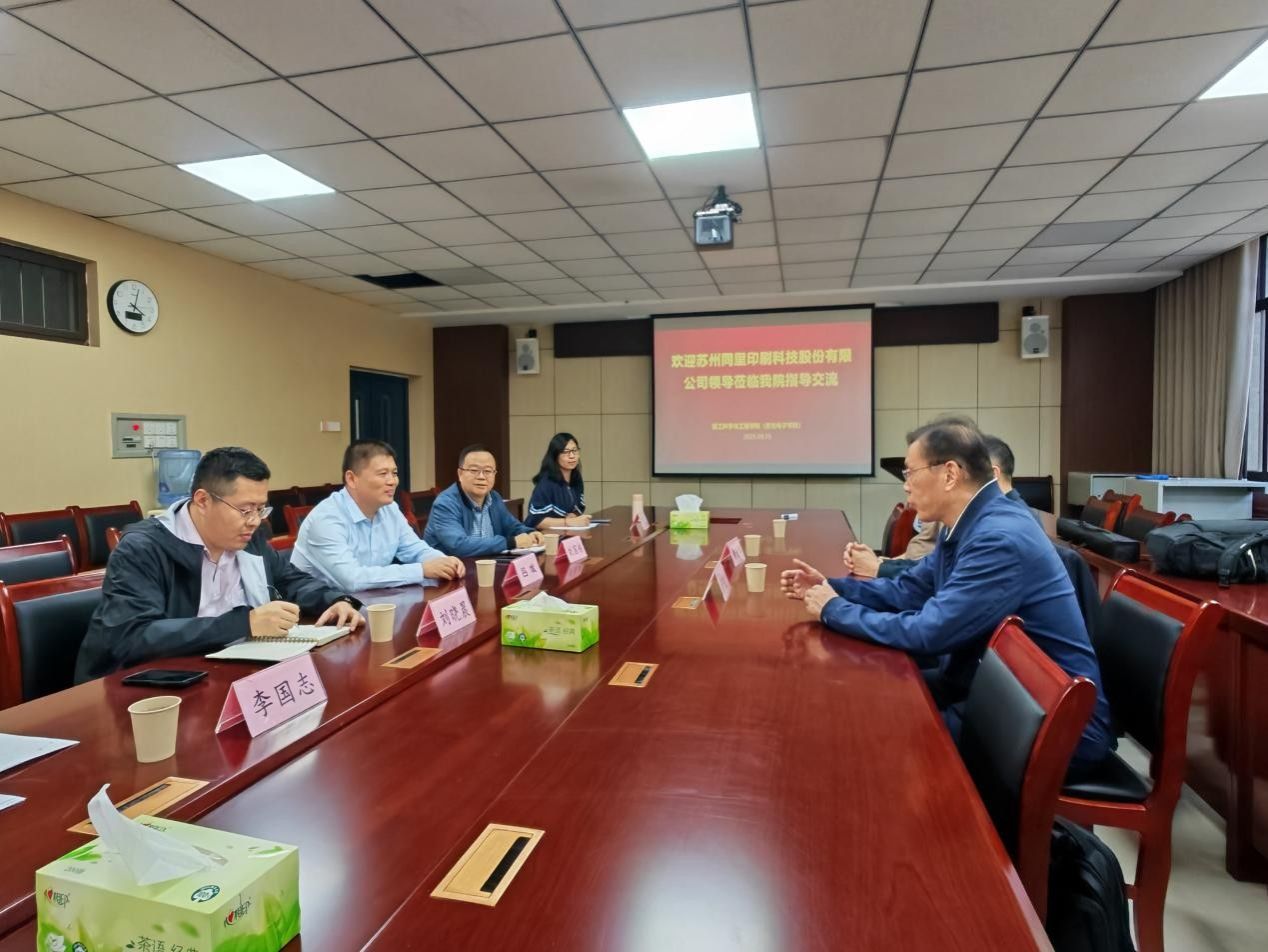 9月25日蘇州同里印刷科技股份有限公司董事長(zhǎng)嚴(yán)建中一行到輕工科學(xué)與工程學(xué)院就智能印刷包裝材料開發(fā)和印包企業(yè)高層次領(lǐng)軍人才的培養(yǎng)等問題進(jìn)行調(diào)研交流。院長(zhǎng)呂斌及新媒體系三位副系主任參加本次座談,會(huì)議由副院長(zhǎng)劉國(guó)棟主持。