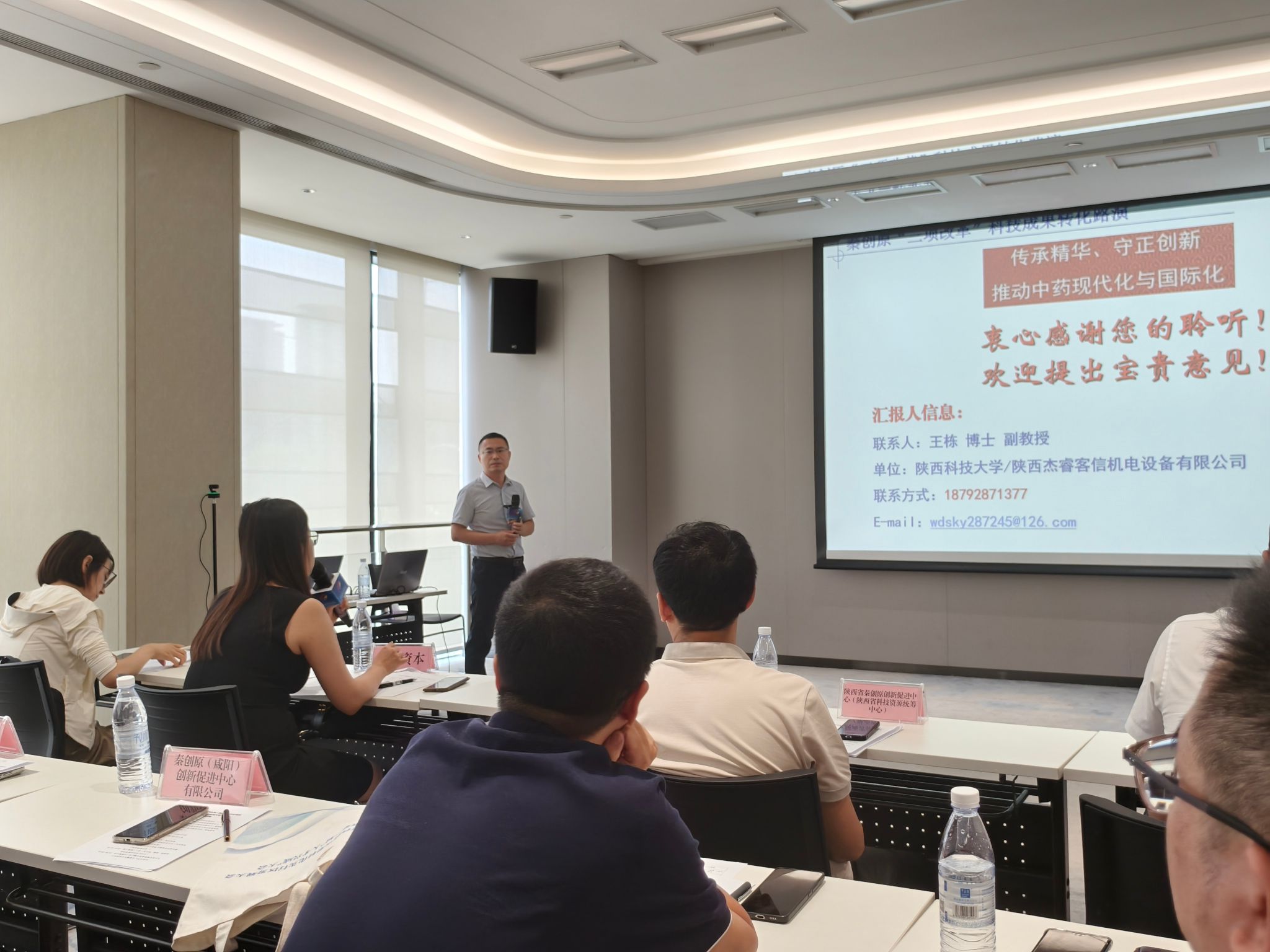 會上,前沿院副院長、科技處副處長張鵬偉向參會的領(lǐng)導和機構(gòu)介紹了學?!叭椄母铩蓖七M情況,陜西省科技資源統(tǒng)籌中心科技金融與產(chǎn)業(yè)發(fā)展服務(wù)部科長唐照霄介紹了“三項改革”相關(guān)政策。