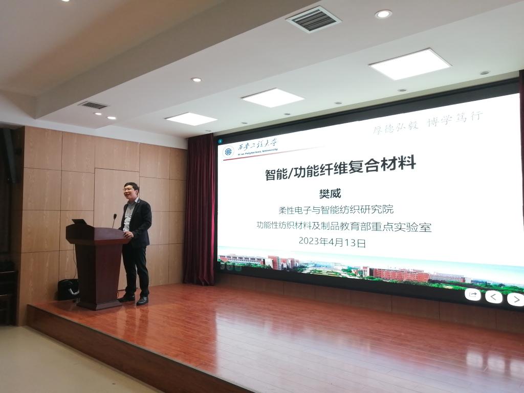 4月13日,應(yīng)我校輕工科學(xué)與工程學(xué)院和研究生院邀請,西安工程大學(xué)樊威教授做客我?!拔囱雽?dǎo)師論壇”,在輕工學(xué)院學(xué)術(shù)報(bào)告廳作了題為“智能/功能纖維復(fù)合材料”的學(xué)術(shù)報(bào)告。學(xué)院相關(guān)專業(yè)教師、研究生參加了此次報(bào)告會(huì)。