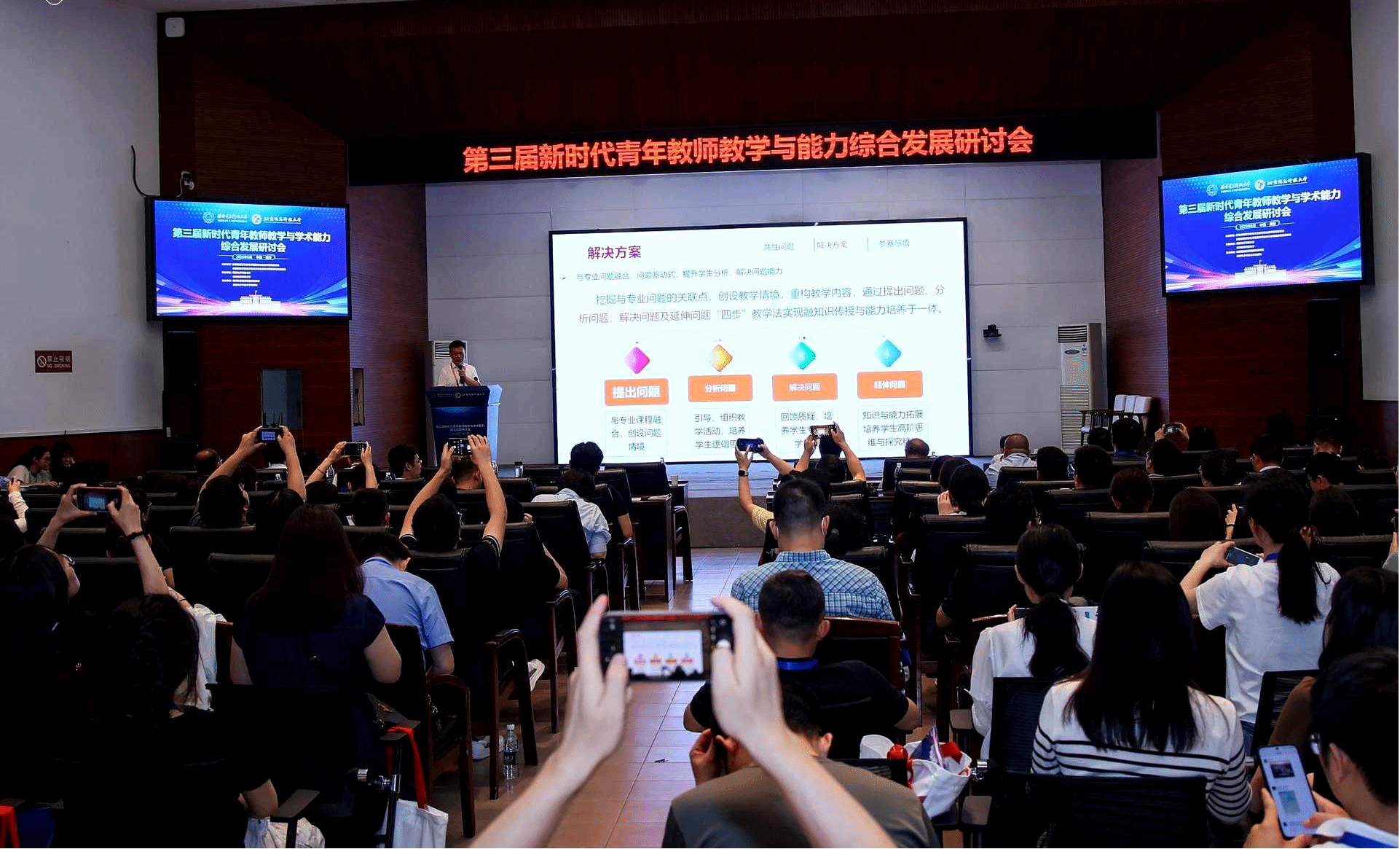 此次研討會電智學(xué)院高度重視、多方協(xié)調(diào)、全力支持,王進(jìn)軍副教授認(rèn)真準(zhǔn)備。作為第五屆、第六屆全全國高等學(xué)校電子信息類專業(yè)青年教師授課競賽一等獎獲得者,他從教學(xué)內(nèi)容選取、教學(xué)設(shè)計、教學(xué)組織與實(shí)施、現(xiàn)場呈現(xiàn)等方面在大會上分享了自己參賽感悟;同時結(jié)合授課競賽并從電子信息類專業(yè)物理基礎(chǔ)課程的共性特點(diǎn)、遇到的教學(xué)問題以及解決方案分享了自己對教學(xué)思考與實(shí)踐,引起了參會教師的共鳴。