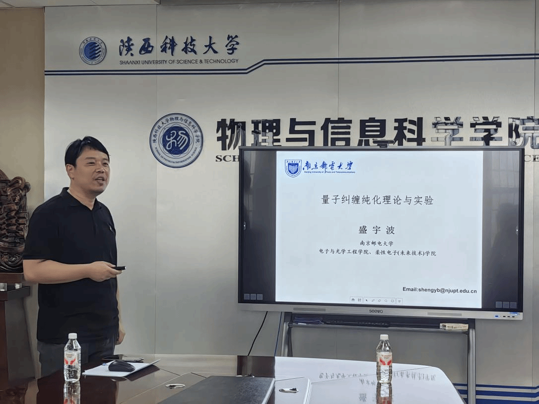 7月7日上午,應(yīng)物理學(xué)院、科技處及前沿院邀請(qǐng),南京郵電大學(xué)盛宇波教授做客我?!扒把乜茖W(xué)報(bào)告”,在理科樓441做題為“量子糾纏純化理論與實(shí)驗(yàn)進(jìn)展”的學(xué)術(shù)報(bào)告。報(bào)告會(huì)由物理學(xué)院院長劉建科主持,相關(guān)專業(yè)教師、研究生參加報(bào)告會(huì)。