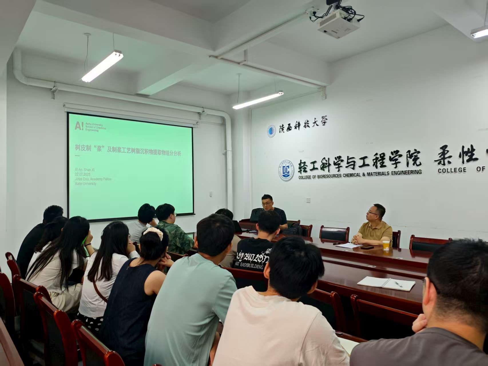 7月22日,應(yīng)學(xué)校輕工科學(xué)與工程學(xué)院(柔性電子學(xué)院)和研究生院邀請,芬蘭阿爾托大學(xué)竇金澤研究員做客我?!拔囱雽?dǎo)師論壇”,作了題為“樹皮制‘漿’及制漿工藝樹脂沉積物提取物組分分析”的學(xué)術(shù)報告。報告會由輕工學(xué)院副院長劉國棟主持,輕工學(xué)院相關(guān)專業(yè)教師和研究生參加了此次報告會。